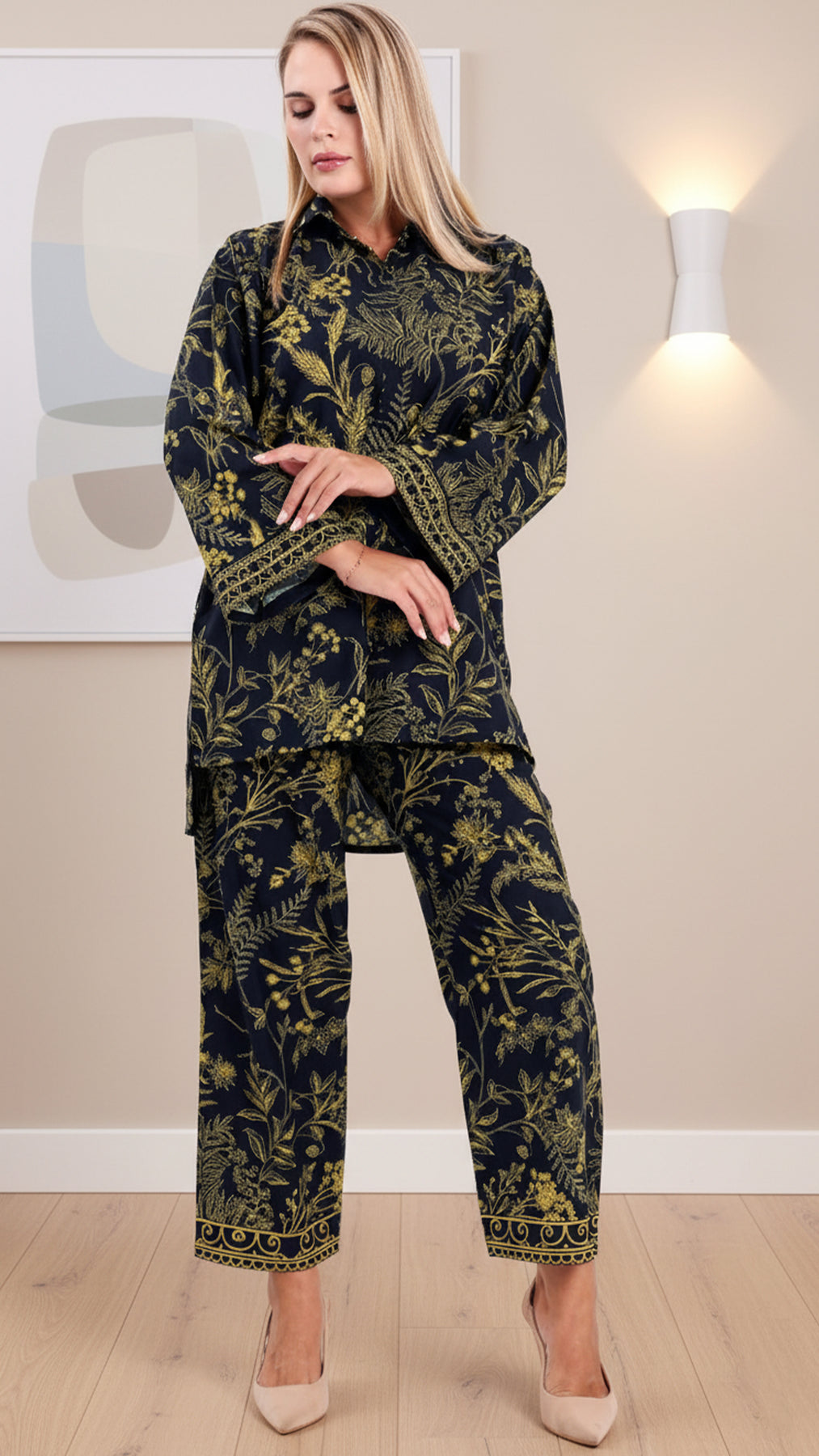 Redefine everyday elegance with this Co-ord Set—crafted in breathable, silky-smooth cambric with a graceful drape and soft sheen. The relaxed fit flatters every silhouette, while the wide-leg pants and fluid top strike the perfect balance between comfort and sophistication.