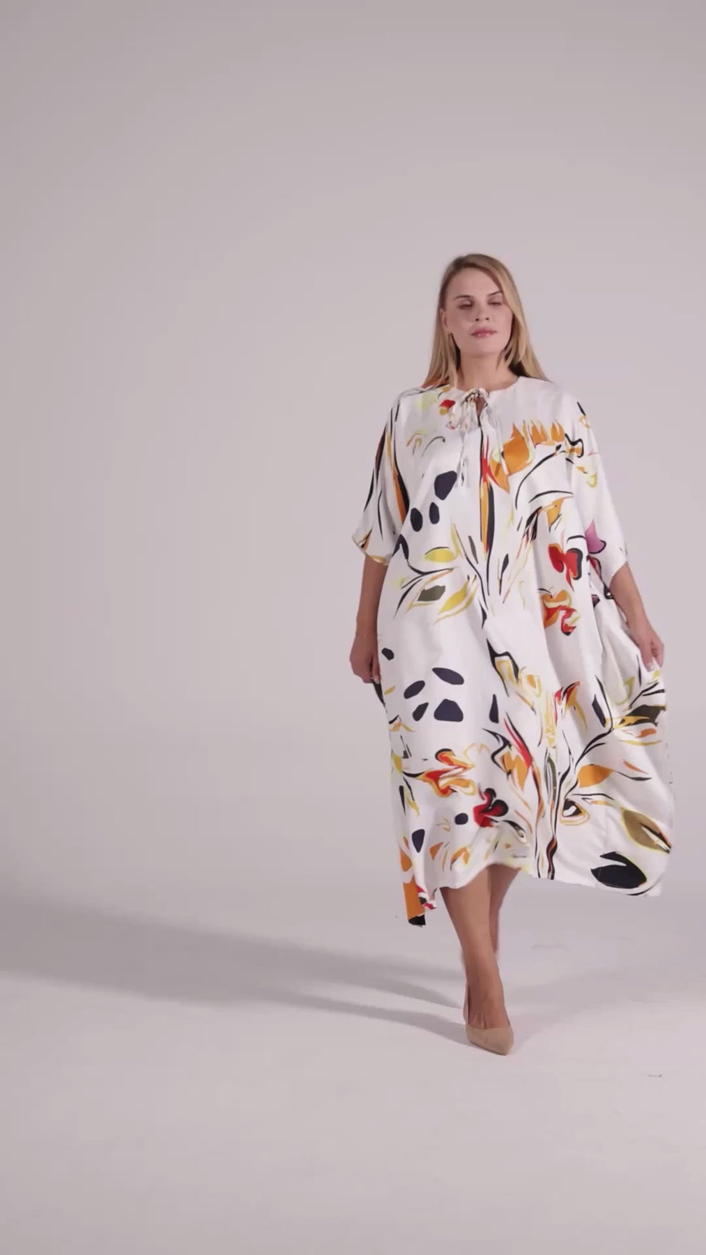 • Fit: Flowy, relaxed silhouette that flatters all body types.