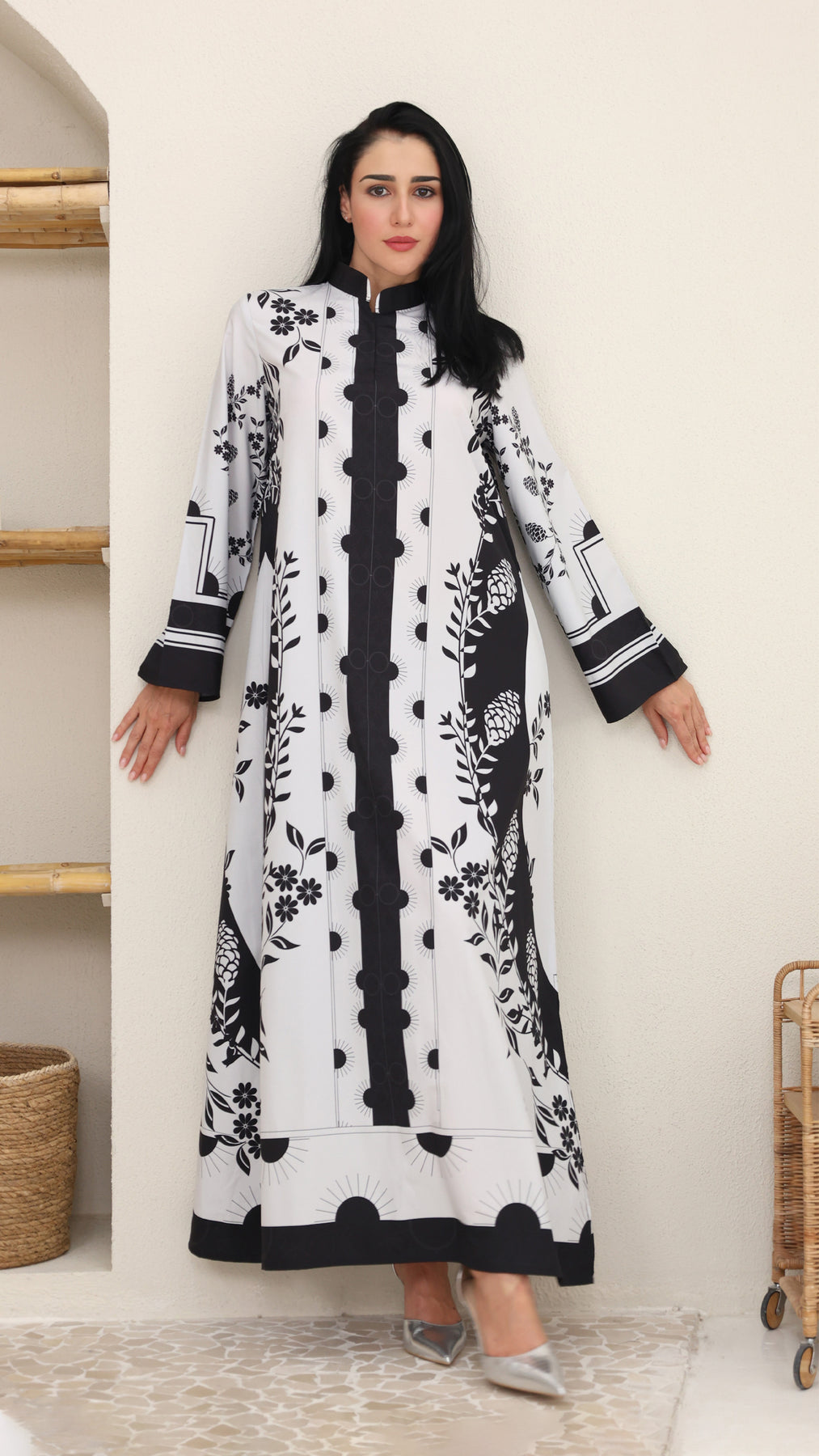 Slip into luxe ease with this kaftan—designed to blend comfort with quiet sophistication. Crafted from premium breathable fabric suitable for all seasons, it drapes beautifully with a soft sheen and breathable feel that moves with you.