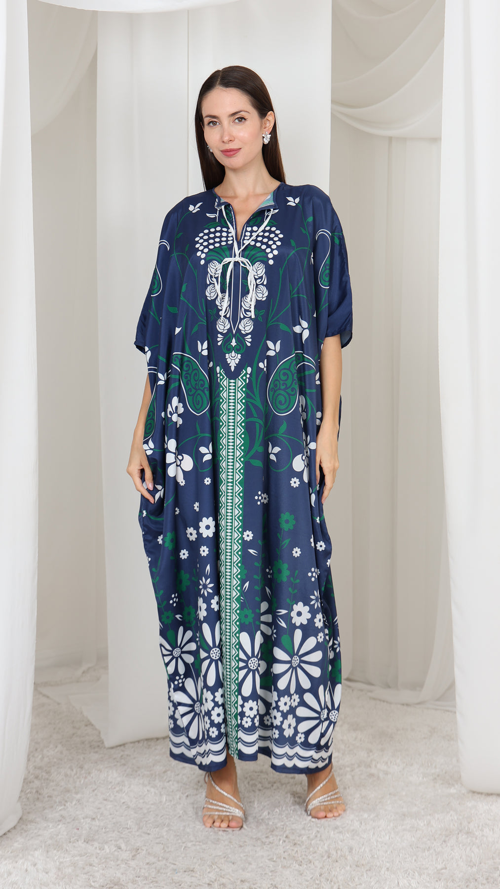 Make an effortless impression with this exquisite kaftan, where grace meets modern ease. Crafted in airy fabric with a dramatic silhouette, it’s your go-to for making an entrance, day or night.